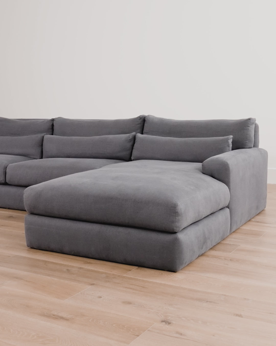 Our Beckstead Chaise Sectional 128" is inspired by modern design elements but with a classically approachable feel. Handcrafted with luxurious comfort and durability in mind, the sectional features an alder wood frame and cushions filled with a feather and down blend. The lumbar pillows create a welcoming feel while its squared arms lend an element of sophistication. Customizable in a wide array of fabrics, you can make this made-to-order piece entirely your own.