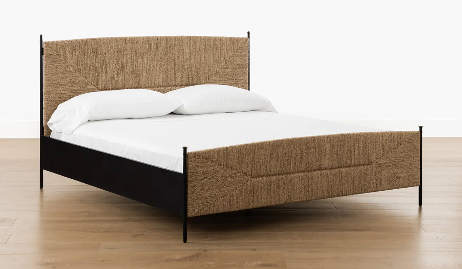 Sleek with a natural feel, the Peregrine has a textured steel frame & woven seagrass headboard.
