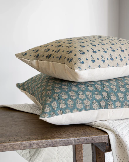 Best Uses: Block-printed pillows make a statement in any room, and therefore pair well with neutral or natural pillows or materials that will allow them to be the focal point.