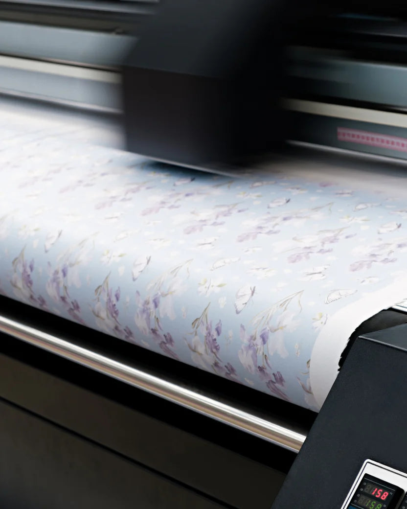 About: Digital printing is performed on machines that employ an ink jet to seamlessly print intricate and colorful patterns directly onto the fabric, ensuring unparalleled detail and depth.