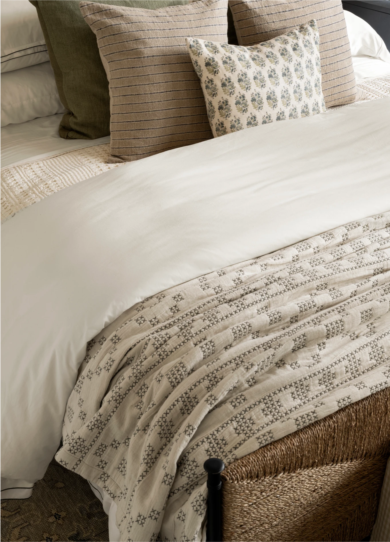 A fresh start for spring begins with bedding swaps that feel light and airy yet still add layer and detail to your primary bedroom.