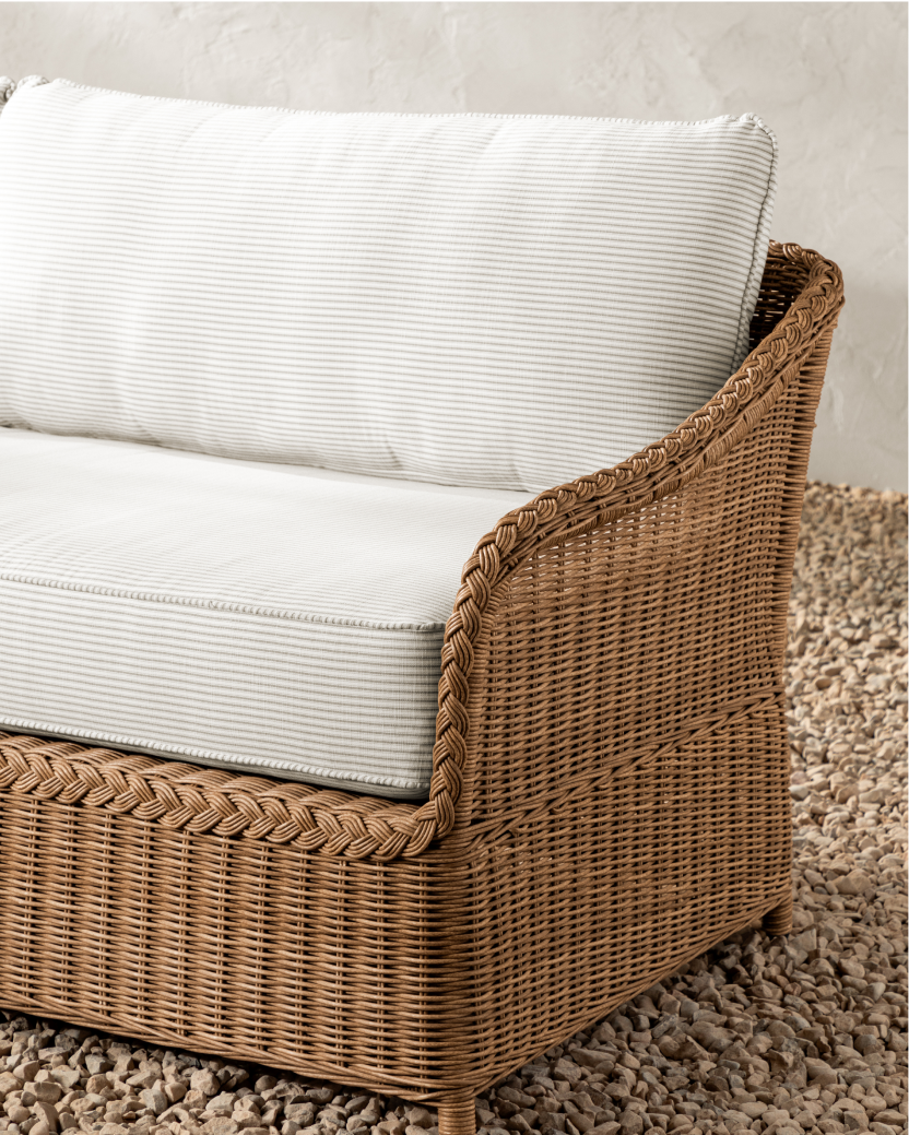 What It Is: Poly wicker is handwoven over a powder-coated aluminum frame, combining artisan craftsmanship with structural integrity. This construction method ensures both flexibility and resilience, delivering a sleek, seamless look that stands up to daily use and changing seasons.