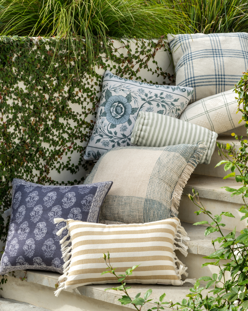 PILLOWSTo style outdoor pillows, follow the same principles as indoor pillows. As you build a vignette that complements your outdoor styling, consider the size, texture, and color palette of each pillow. Mixing and matching adds depth and charm to your decor, so find opportunities to play with a variety of textures or layer some bold prints with solid neutrals. For more warmth and comfort, consider incorporating a throw or two to complete the look. If you’re not sure where to begin, start by selecting a design element in your outdoor space and use it as a jumping-off point for curating your pillow vignette. |