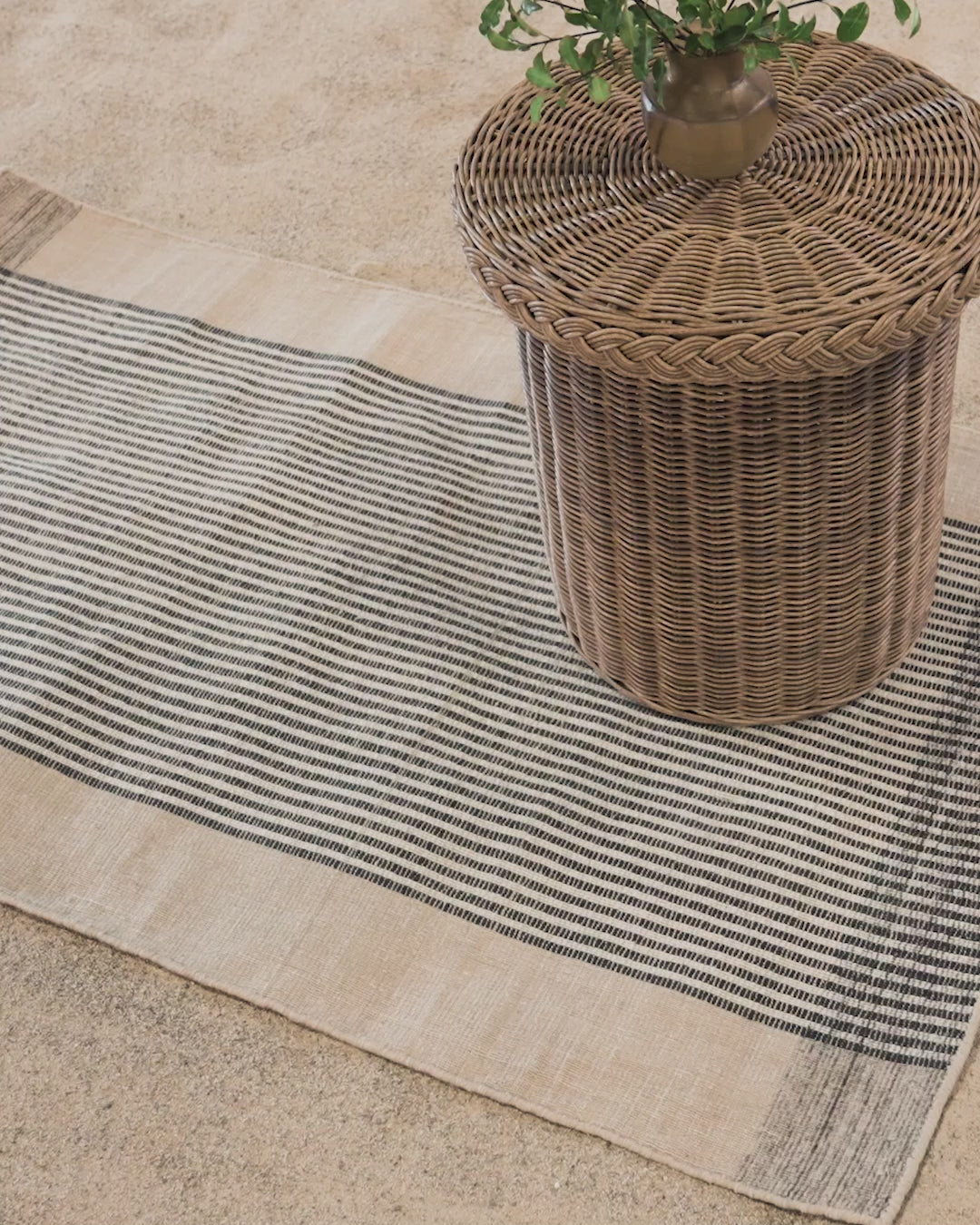 Entirely handwoven, the Fitchburg Handwoven Indoor/Outdoor Rug is soft underfoot with a durable construction. In a palette of tan and navy, its pinstripe pattern feels approachable and playful, bringing warmth and detail to your outdoor spaces.