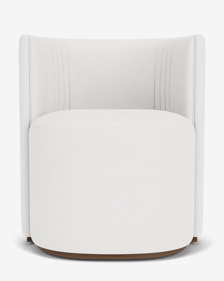 Dramatic and shapely, our Georgina Dining Chair is designed with subtle art deco inspiration. Bench-made by craftsmen, the chair provides sophisticated seating in your dining room with its intentional details, barrel back, and your choice of designer upholstery.