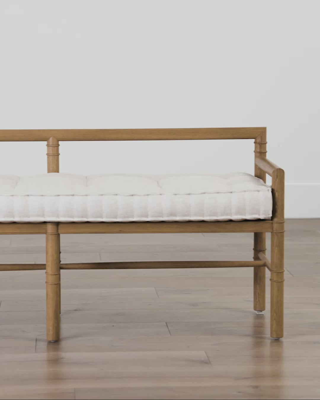 The Hindley Bench brings refined simplicity to any space with its clean lines, spindle-inspired frame, and comfortably upholstered cushion. Crafted from solid wood, its airy profile makes it versatile for an entryway, dining nook, or bedroom, blending timeless craftsmanship with effortless livability.